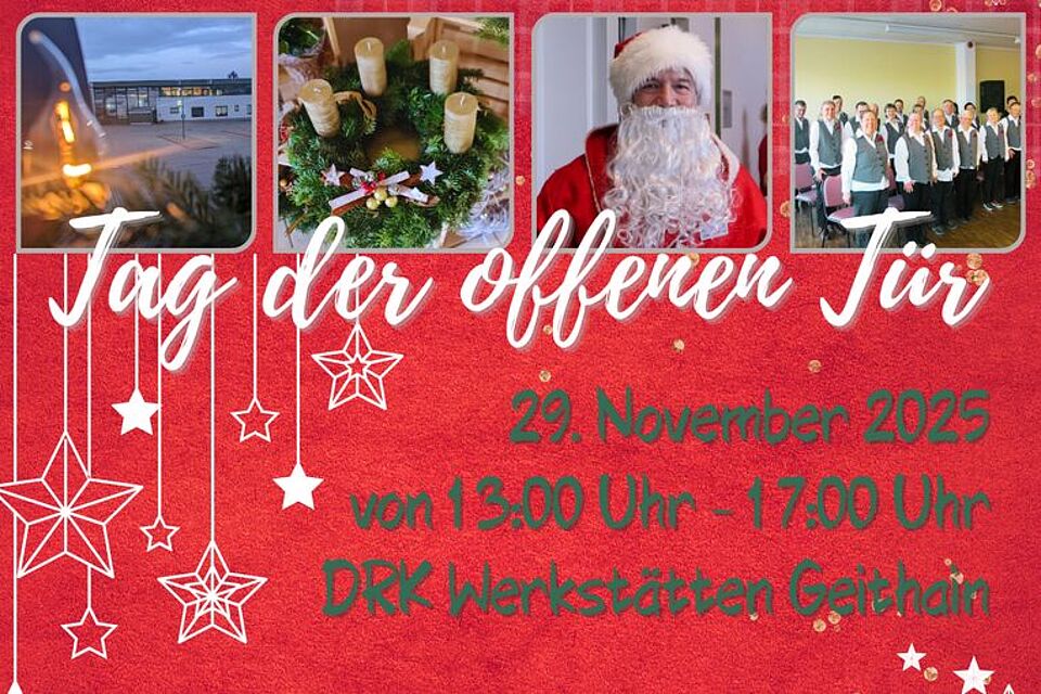 Am Samstag, den 29. November 2025, laden die DRK Werkstätten Geithain herzlich zum Tag der offenen Tür ein. In der Zeit von 13:00 bis 17:00 Uhr haben Besucherinnen und Besucher die Gelegenheit, einen spannenden Einblick in unsere Einrichtung zu erhalten.